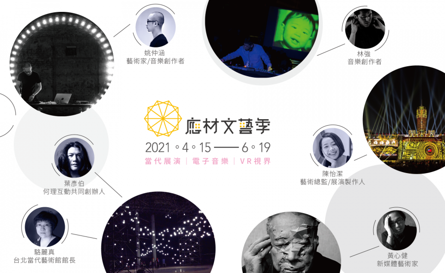 2021應材文藝季--『漫光』公益免費講座,4/15-6/19於新竹、台中、台南舉行。MOCA Taipei駱麗真館長與藝術家/音樂創作者姚仲涵、何理互動創辦人葉彥伯、藝術總監陳怡潔,聯袂幕後解密聲光創作、電子造景與光雕藝術;音樂創作人林強探索當代電音;新媒體藝術家黃心健分享超現實VR電影創作。