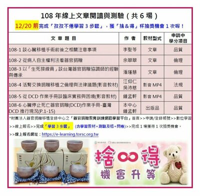 108年器官捐贈線上文章閱讀與測驗