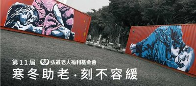 1、活動名稱:第11屆「寒冬助老·刻不容緩」獨居老人城市畫展2、類別:「老人社福」3、主辦單位:弘道老人福利基金會4、時間:2019年12月18日至2020年02月29日止5、地點:l臺北松山文創園區l臺北西門in89豪華數位影城l臺北華山文創園區路口l臺中綠光計畫l高雄集盒.KUBIC貨櫃園區※確切地點可參考網址:https://witon.page.link/Y2uY6、活動宗旨:弘道第11年發起《寒冬助老刻不容緩》獨居弱勢長輩關懷計畫,專為弱勢長者募集照顧經費且號招志工們投入服務協助長輩。期待透過入冬前的年度